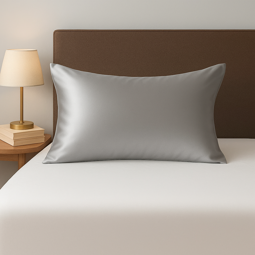 La taie d’oreiller en soie 19 Momme silver se distingue par sa brillance élégante et son toucher lisse. Le grade 6A garantit des fibres longues et pures, offrant une texture douce qui respecte la peau et réduit les marques au réveil.