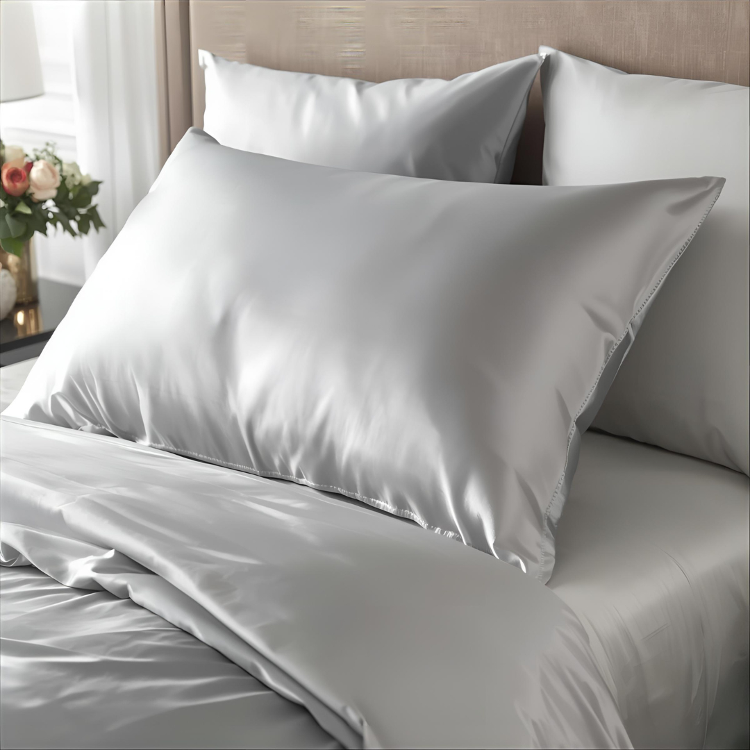 Taie d’oreiller en soie argent 50x70 – Élégance & confort 25 Momme