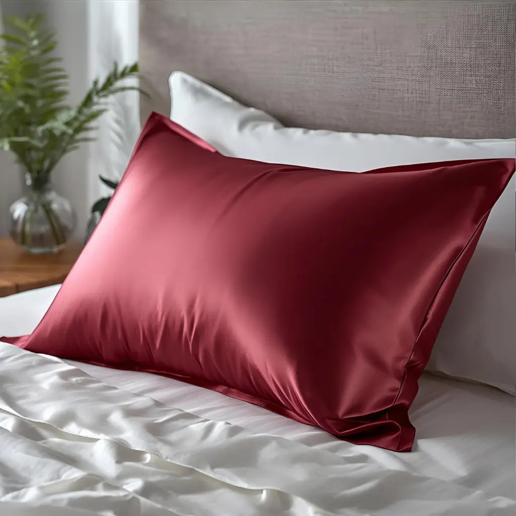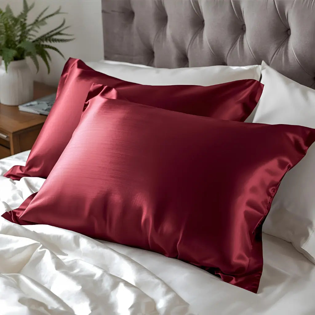 Une taie d’oreiller en soie 30 Momme couleur rouge profond pour des nuits à la fois élégantes et protectrices : cheveux moins abîmés, peau moins marquée, et une chambre qui gagne immédiatement en caractère haut de gamme.